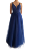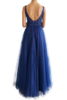 Alquila este Vestido de fiesta azul corte princesa, escote en V bordado en pedreria y espalda profunda. Ideal Para mujeres jóvenes que deseen asistir a un evento muy elegante.