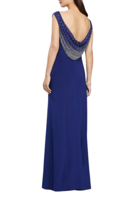 Femenino y romántico vestido largo en tonos azules. Sin duda, es una opción elegante para la noche especial. Requiere simplemente unos aretes sencillos y elegantes.