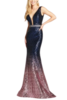 Alquila este espectacular vestido azul en delicadas lentejuelas con degradé rosa en la parte inferior de la falda y pedrería en la cintura para resaltarla su escote es en V profundo. Un vestido perfecto elegantes con código corbata negra. Simplemente deslumbraste.
