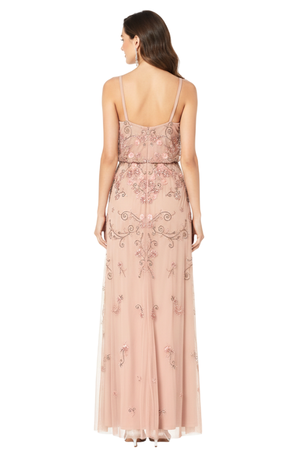 Simplemente hermoso. Vestido ablusado falda recta, escote en v, bordado en pedrería. Es un vestido muy romántico que favorece la silueta. Ideal para eventos elegantes.